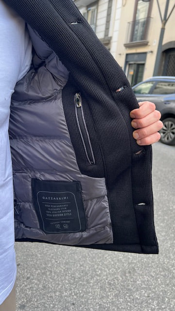 Il giubbotto Gazzarrini esprime l’essenza dello stile italiano contemporaneo: elegante, sobrio e sempre attuale. Realizzato in tessuto misto tecnico, offre comfort e resistenza ideali per l’uso quotidiano. La chiusura con bottone sul davanti, le tasche laterali funzionali e la tasca sul petto aggiungono praticità senza rinunciare al design minimal e raffinato.