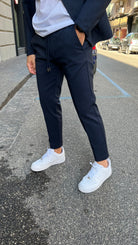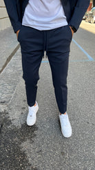 Scopri il comfort senza rinunciare allo stile con il nostro pantalaccio Enjoy con elastico in vita, perfetto per creare un look coordinato insieme alla giacca abbinata. La vestibilità slim segue la linea della gamba in modo asciutto e valorizzante.