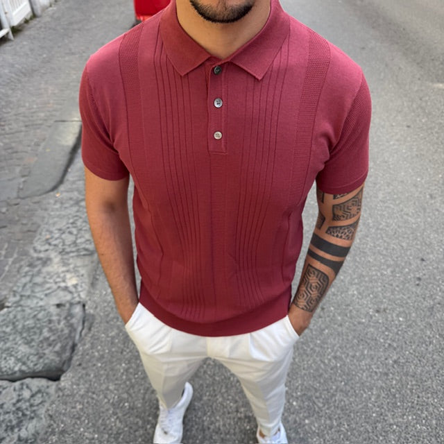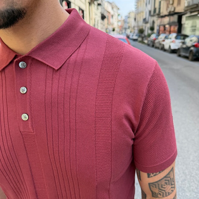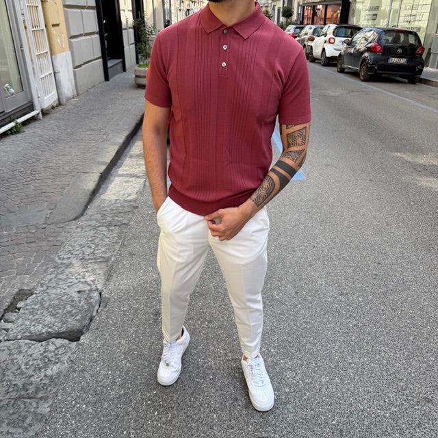 Il colletto classico con chiusura a tre bottoni richiama lo stile intramontabile della polo, mentre la vestibilità aderente esalta le linee del corpo senza rinunciare alla comodità. Il tessuto, morbido e piacevole al tatto, garantisce freschezza e leggerezza, rendendola ideale per la stagione primavera-estate.
