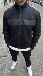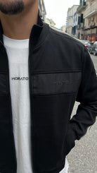 Felpa con zip frontale dalla vestibilità regular, realizzata in tessuto misto cotone interlock, compatto e confortevole. La felpa presenta due fasce a contrasto colore applicate lungo le maniche, una fascia in tessuto tecnico sulla parte frontale e stampa logo ad effetto metallico. Polsini e fondo in maglia elastica. Un capo che si ispira allo stile urban, senza rinunciare alla versatilità.