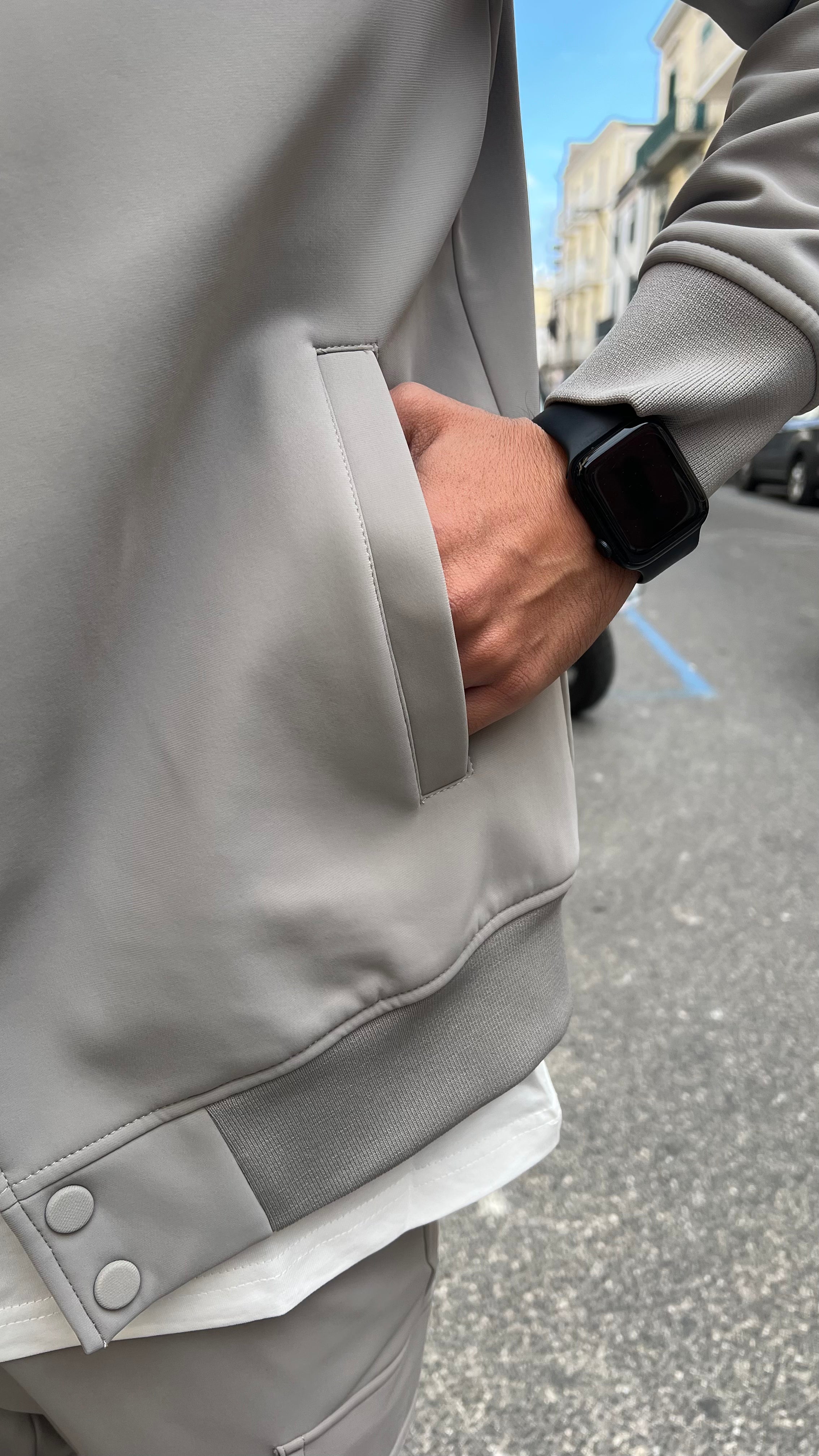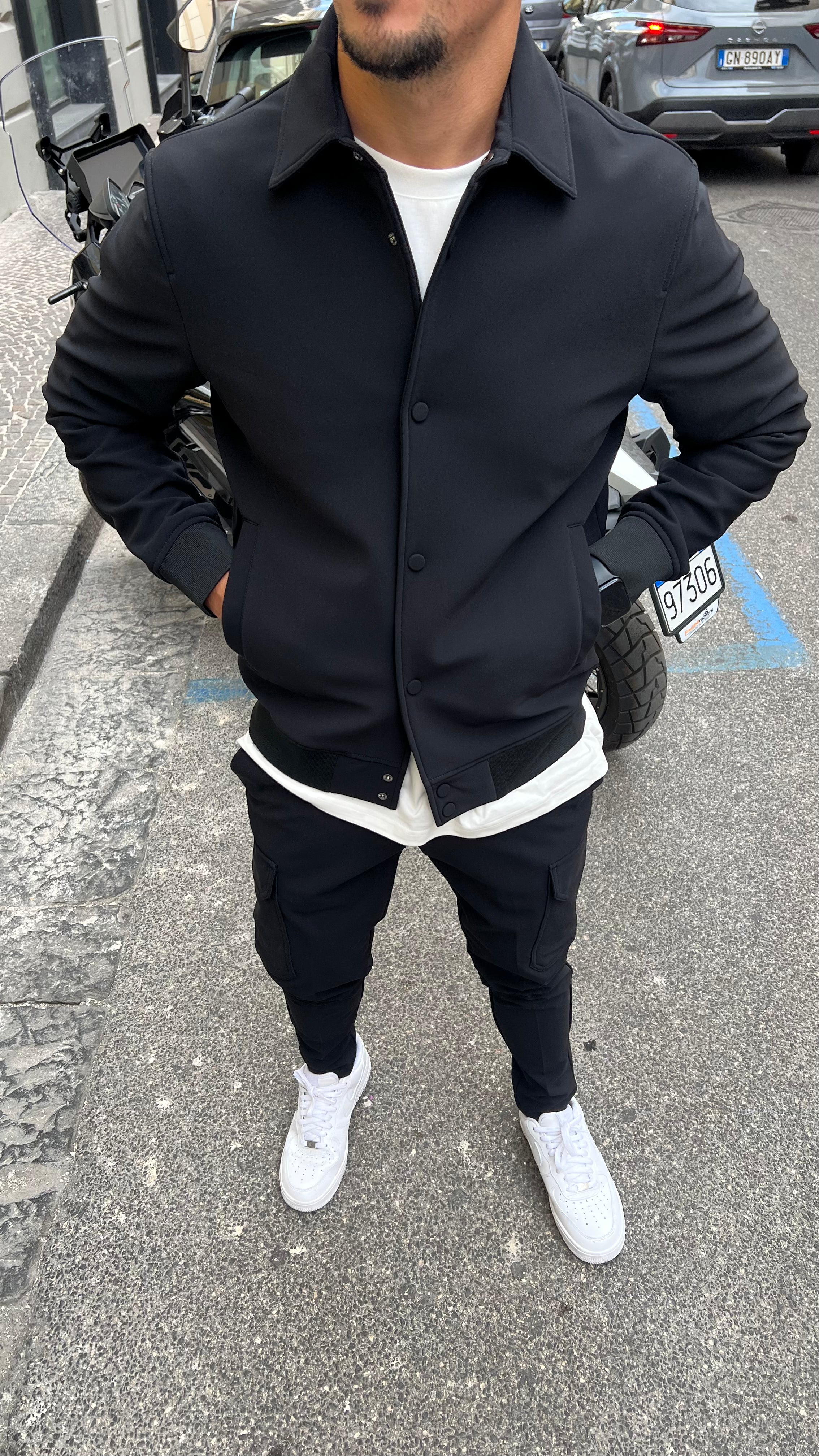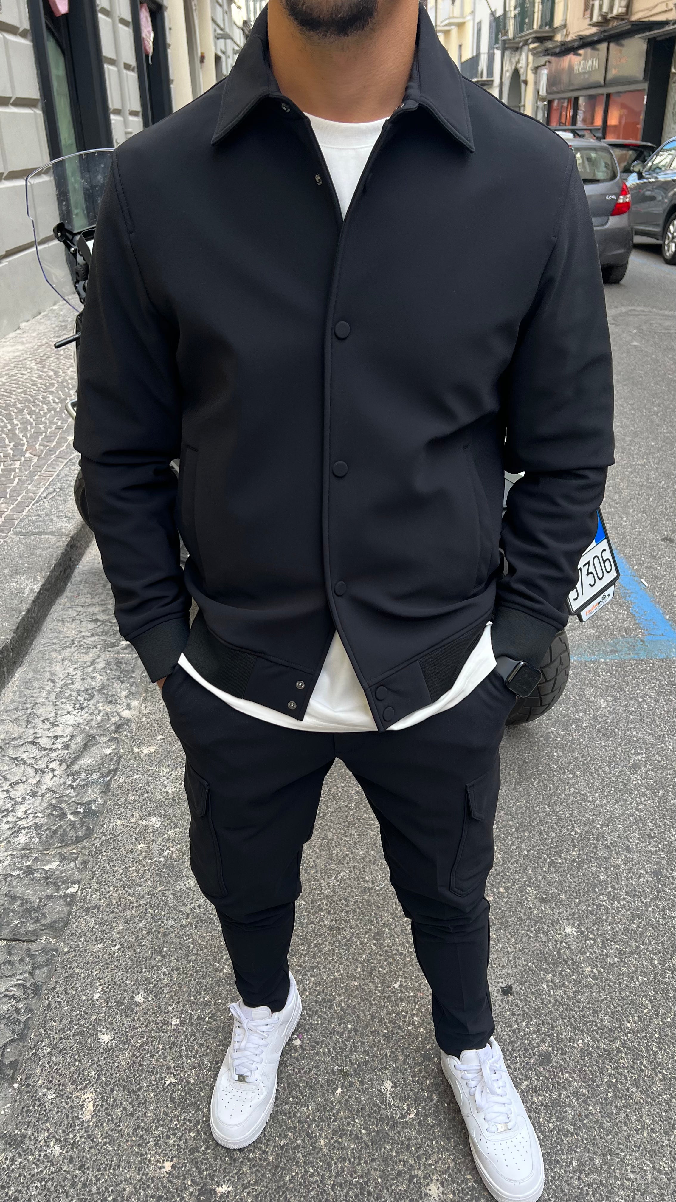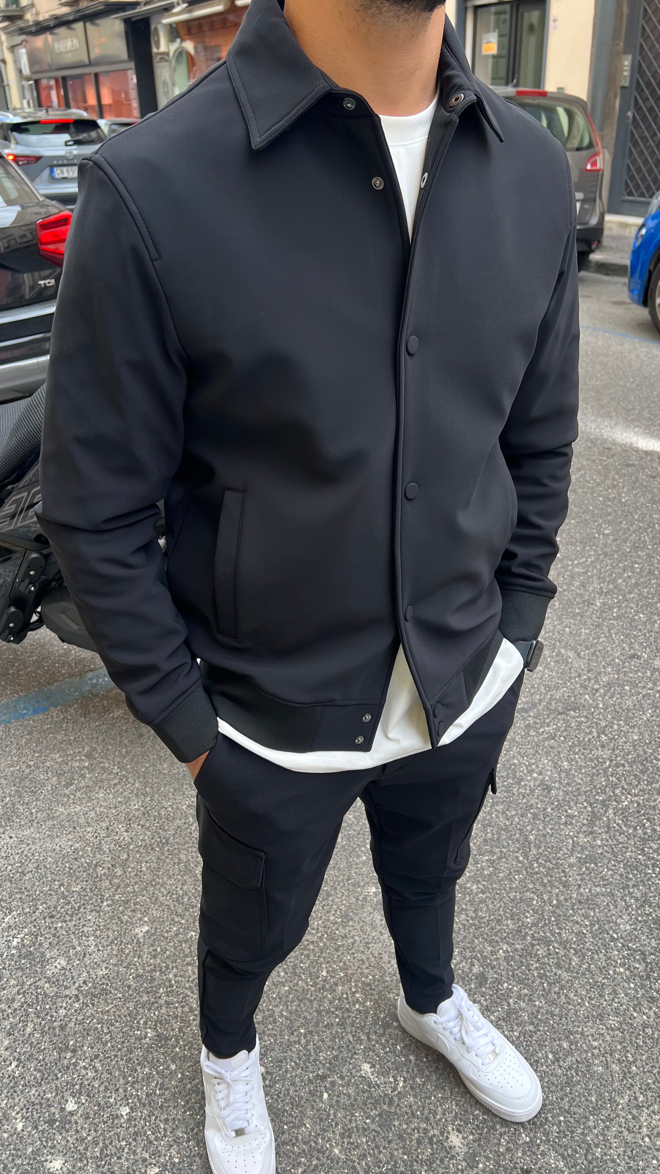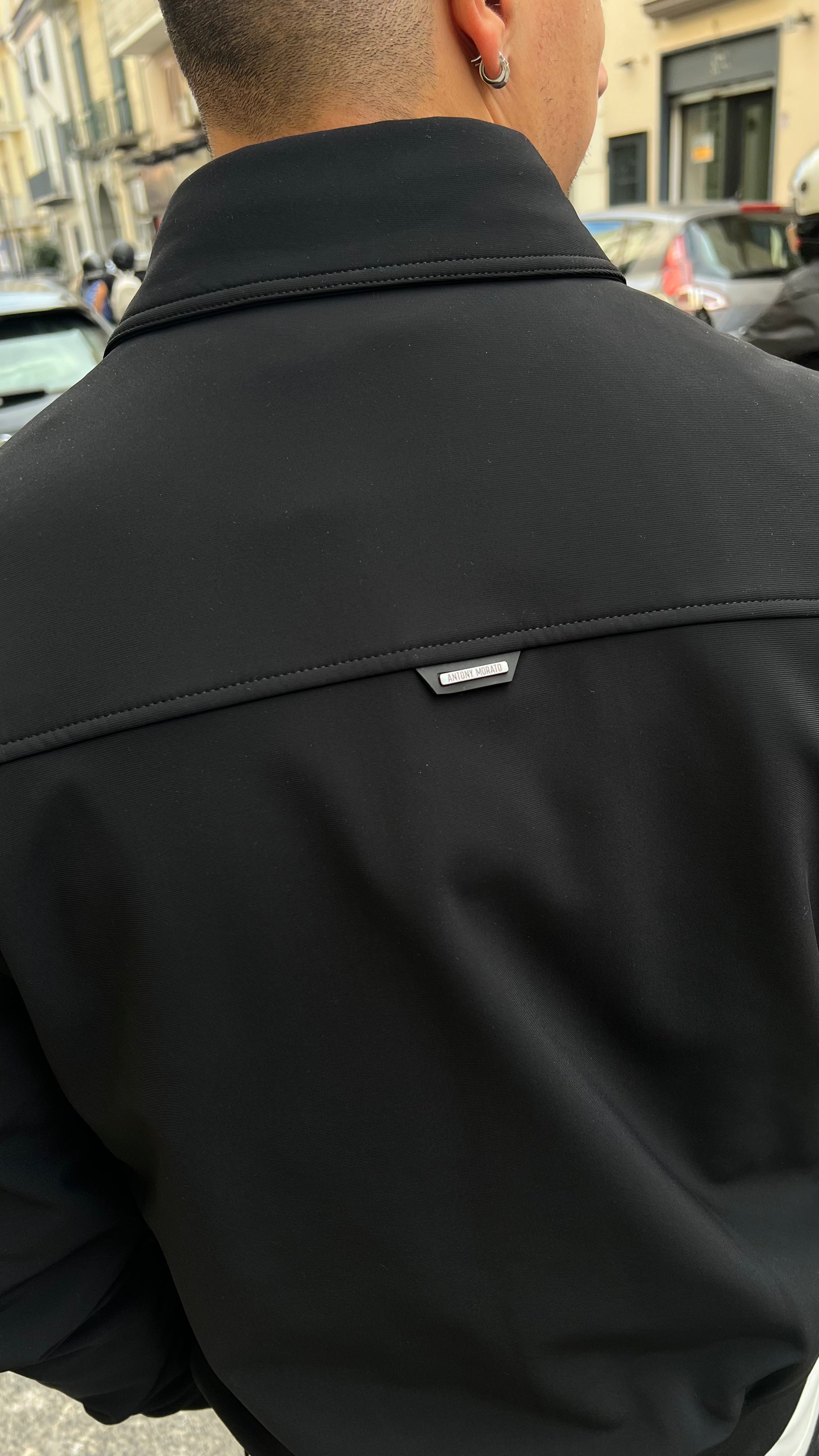 Giacca regular fit con colletto classico, realizzata in tessuto tecnico bi-stretch dal tocco morbido. Inoltre, il capo è dotato di una morbida e leggera eco-imbottitura DuPont Sorona®, mantenimento delle forme e soprattutto per l'elevato comfort termico. Chiusura con bottoni a pressione, due tasche a filetto, polsini e fondo in maglia elastica. Sul retro, piccola linguetta con applicata una placchetta metallica logata.