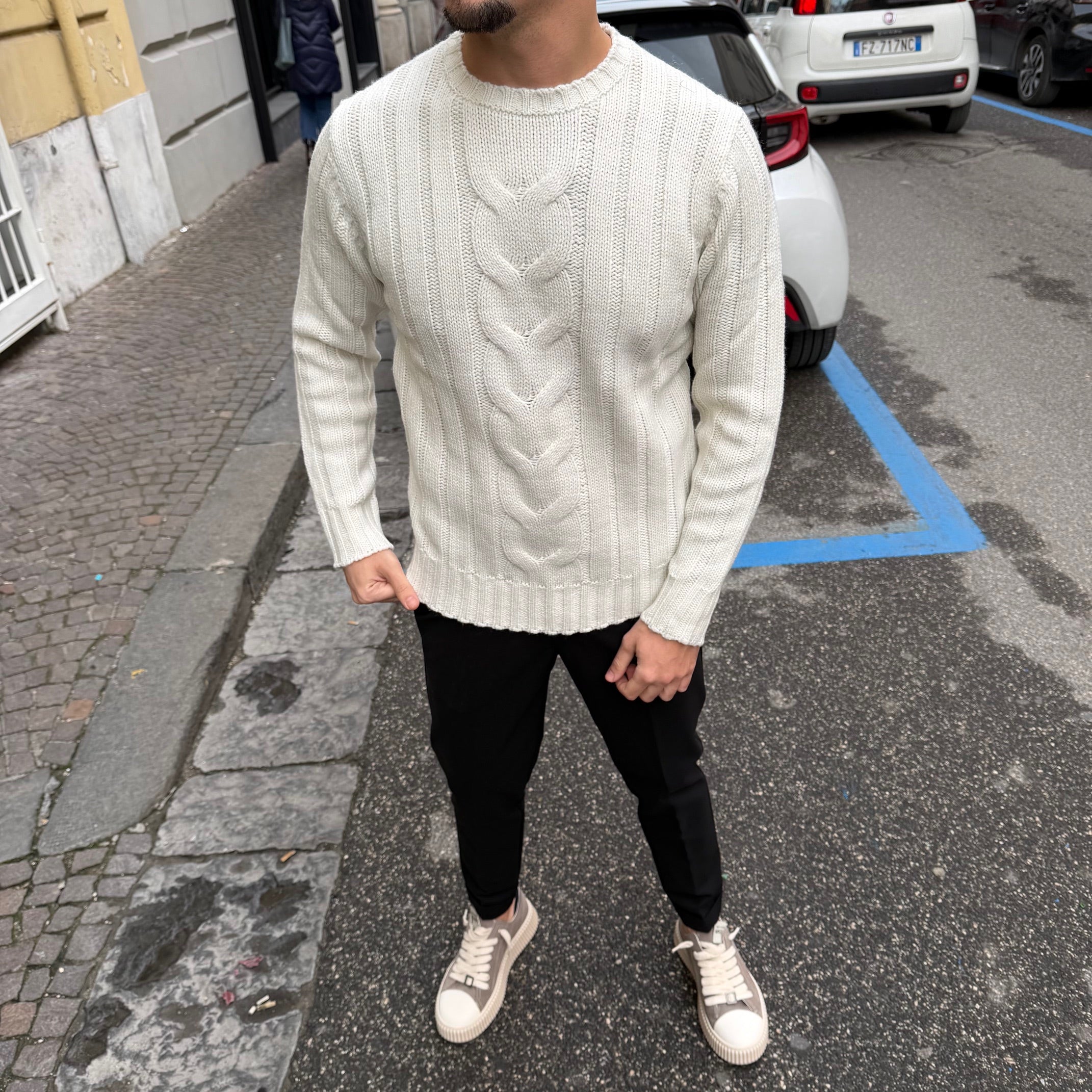 - Realizzato in morbido filato bianco con lavorazione a trecce, offre un comfort superiore e un aspetto raffinato