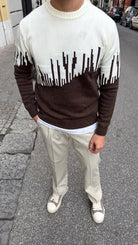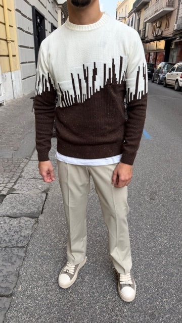 - Design bicolore con pattern asimmetrico: combina il bianco con il marrone in modo elegante e moderno, perfetto per chi ama distinguersi senza rinunciare alla versatilità.