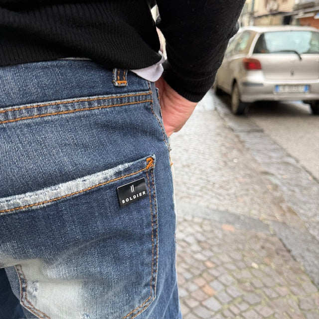 I Jeans Soldier sono il perfetto equilibrio tra stile urban e comfort quotidiano. Realizzati in denim elasticizzato, garantiscono una vestibilità slim aderente che valorizza la silhouette senza rinunciare alla libertà di movimento.