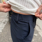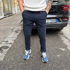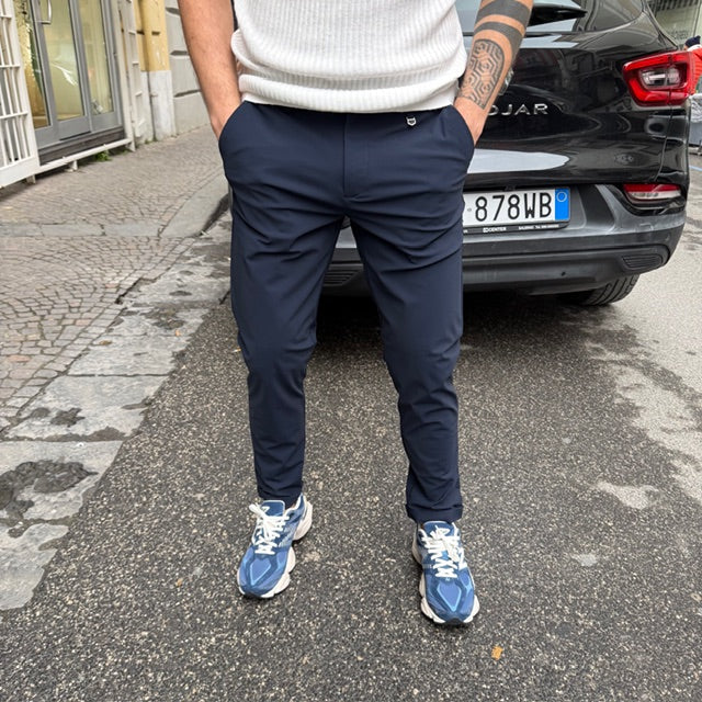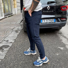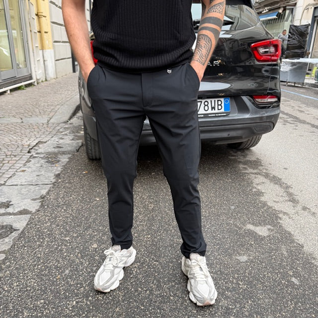 Il design contemporaneo è arricchito dal risvoltino alla caviglia, un dettaglio di stile che dona al capo un tocco urbano e ricercato. La linea pulita e le finiture curate rendono questi pantaloni perfetti sia per outfit casual che per abbinamenti più sofisticati.