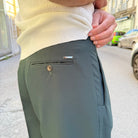 Il tessuto, dall’aspetto compatto e leggermente strutturato, garantisce comfort e versatilità, rendendo il capo adatto sia a contesti casual che a outfit più ricercati.