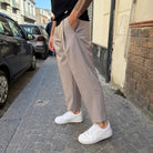 La vestibilità è morbida e confortevole, con vita regolare e gamba larga che scende fluida fino alla caviglia. La lunghezza cropped – tipicamente sopra la caviglia – dona un tocco moderno e leggero al look , mettendo in risalto la calzatura.