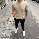 Il tessuto in filo, morbido e raffinato, dona alla maglia un aspetto più ricercato rispetto alla classica t-shirt in cotone, mantenendo al tempo stesso elasticità e libertà di movimento. Il design minimal, arricchito da dettagli curati, la rende perfetta sia per outfit casual che per abbinamenti più sofisticati.