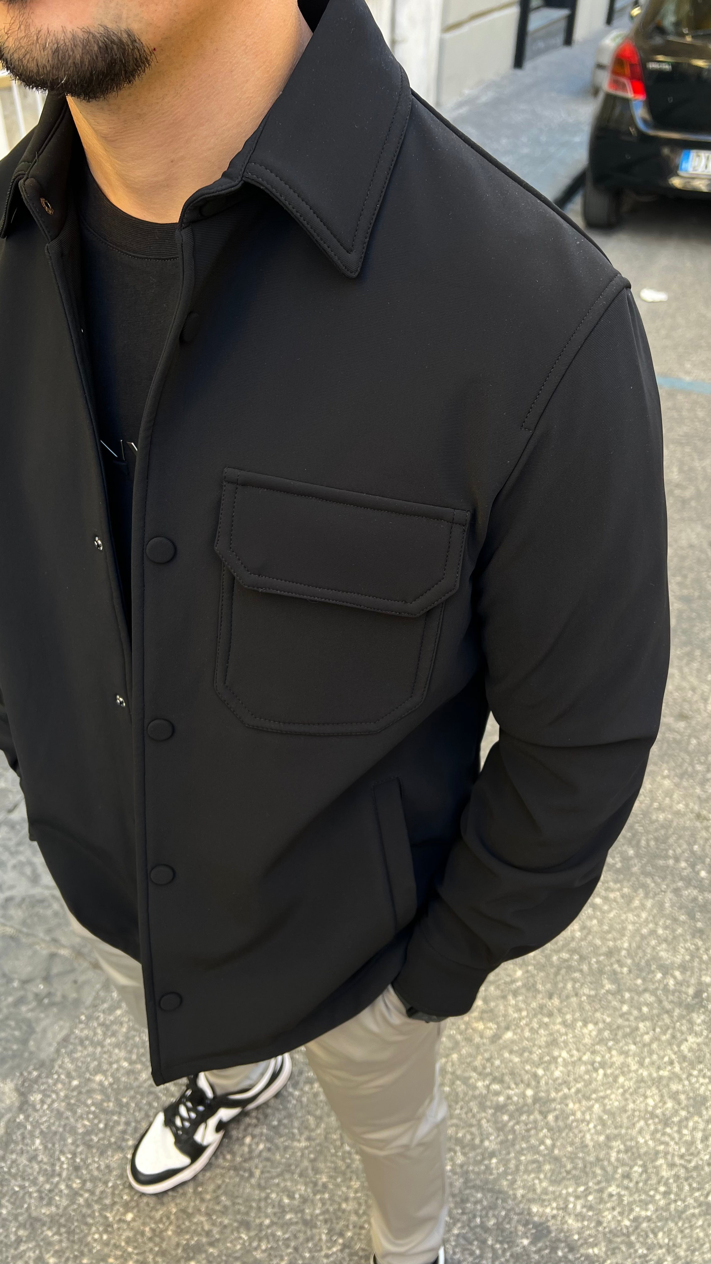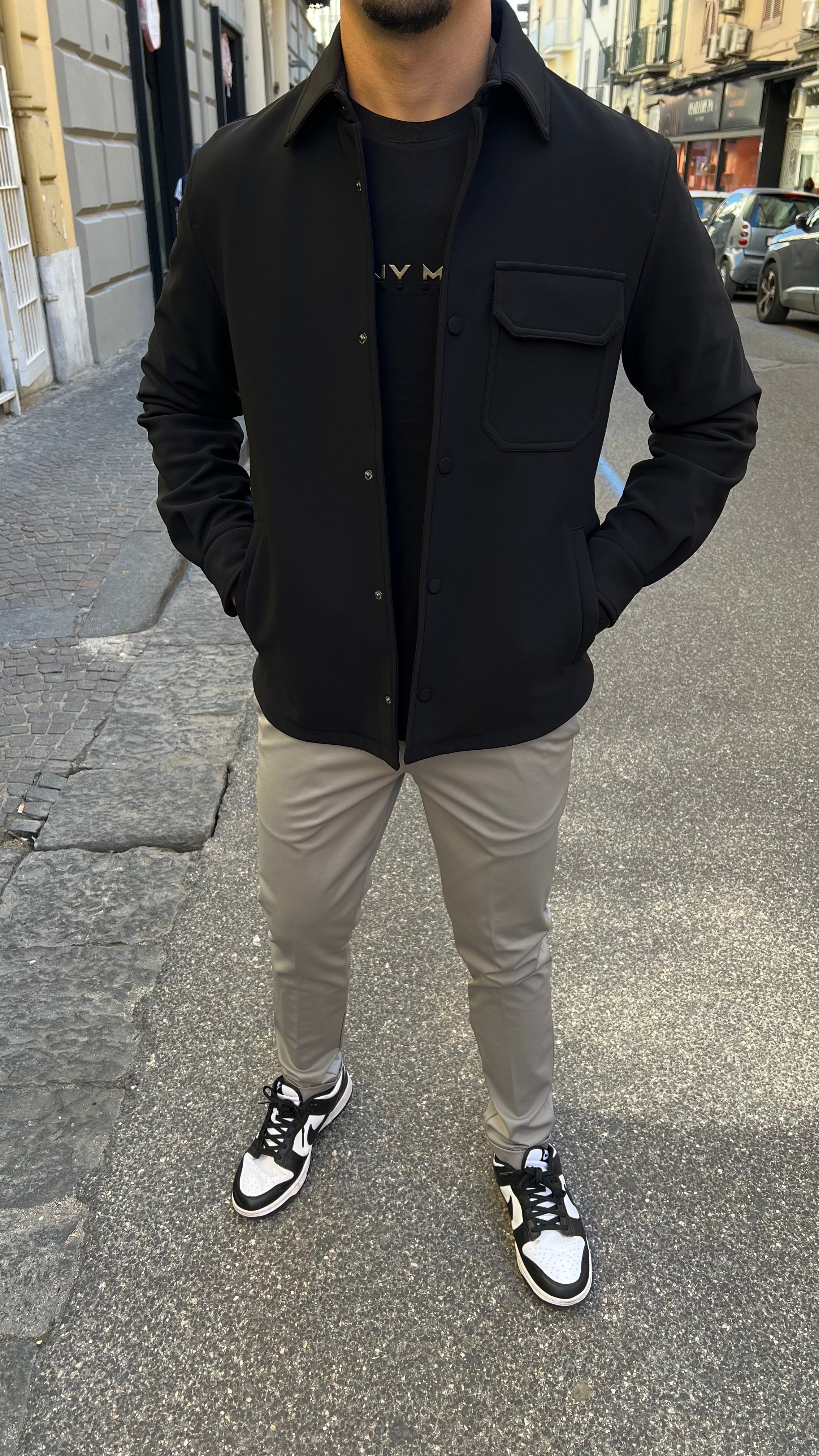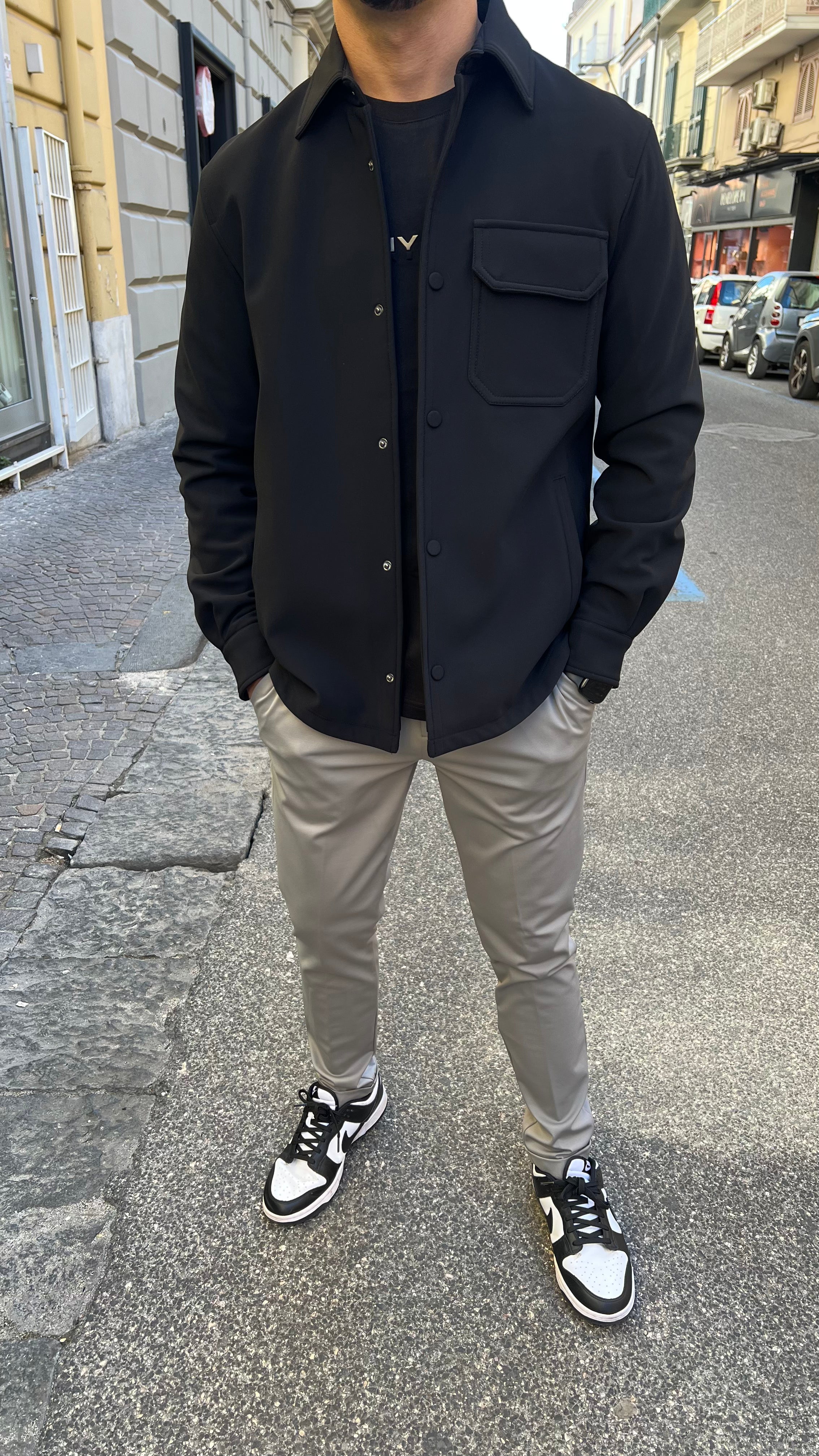 Giacca regular fit con colletto classico, realizzata in tessuto tecnico bi-stretch dal tocco morbido. Inoltre, il capo è dotato di una morbida e leggera eco-imbottitura DuPont Sorona®, mantenimento delle forme e soprattutto per l'elevato comfort termico. Chiusura con bottoni a pressione, due tasche a filetto, polsini e fondo in maglia elastica. Sul retro, piccola linguetta con applicata una placchetta metallica logata.